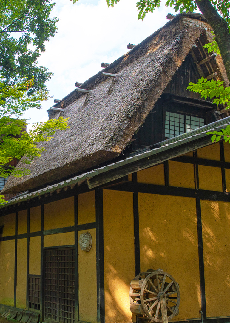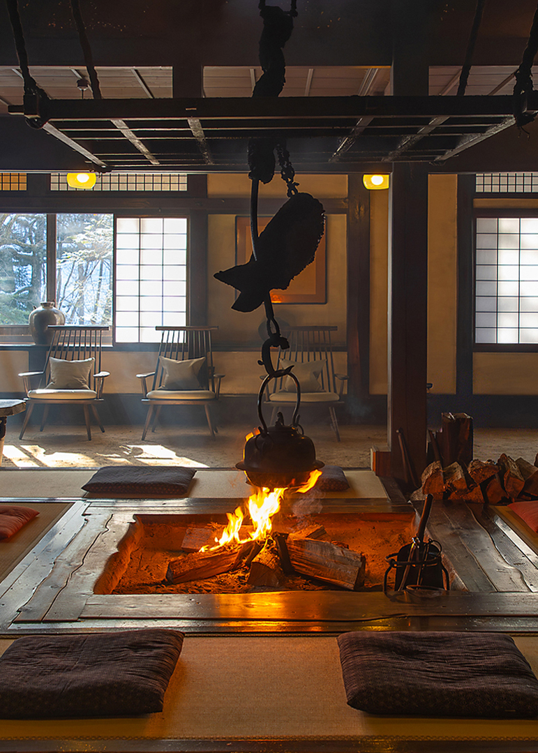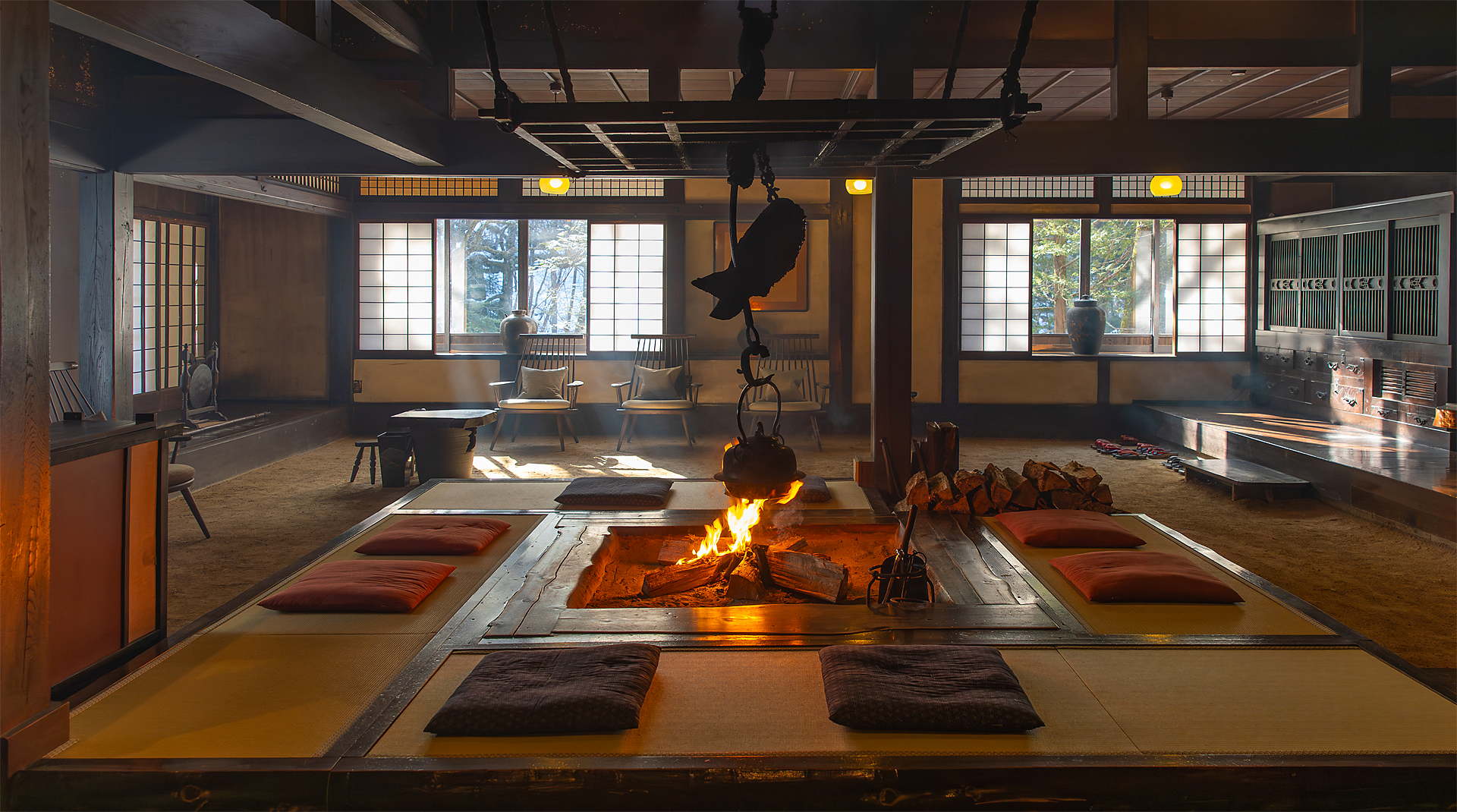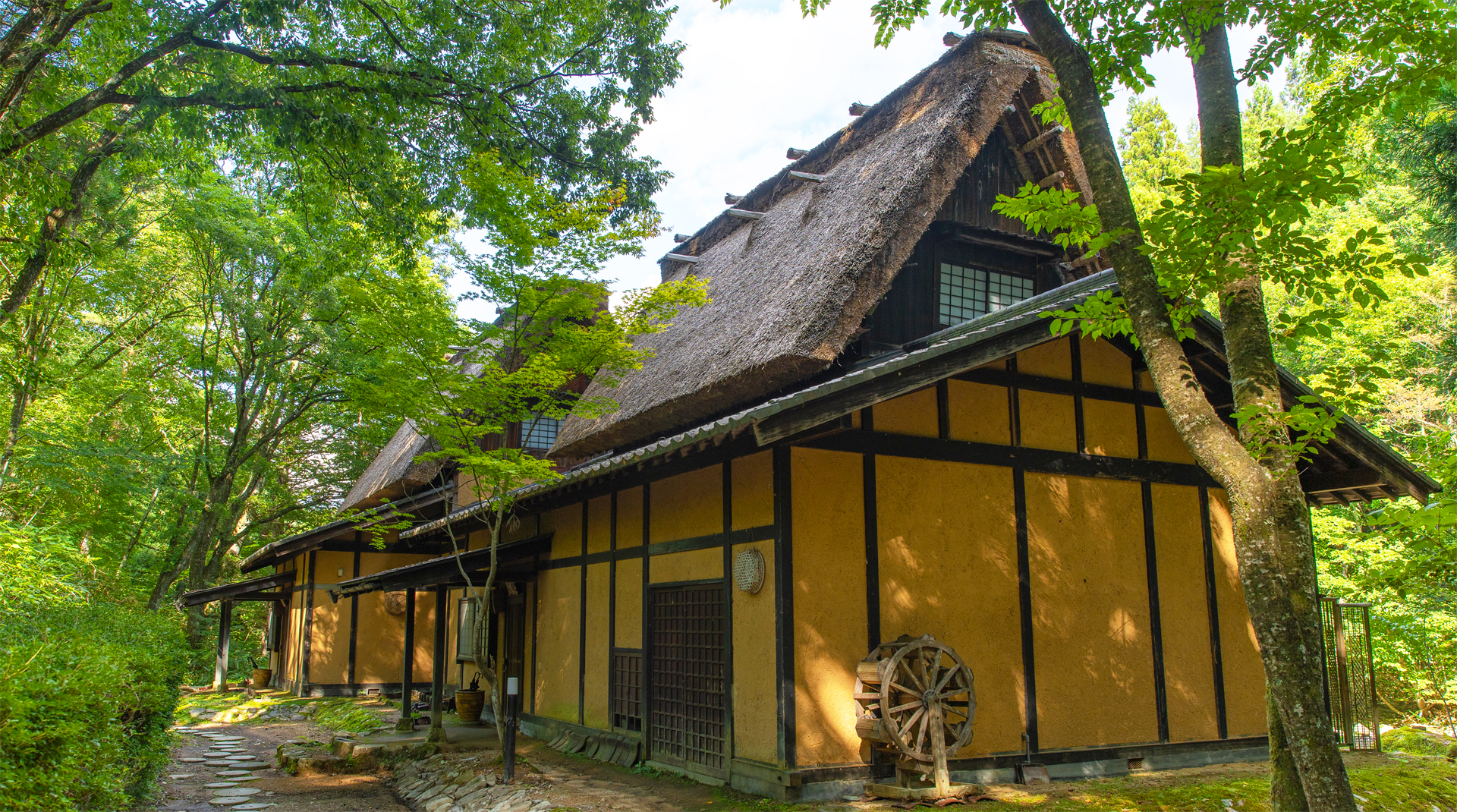 合掌造りの離れに、飛騨の木材と伝統工芸・春慶塗を贅沢に使用した貴賓室等倭乃里には異なる趣向を